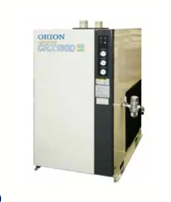 The Orion CRX120D Refrigerated Air Dryer provides reliable moisture removal with a capacity of approximately 12 m³/min, operating at pressures from 0.2 to 0.98 MPa. Built for heavy-duty industrial use, it features a stainless steel heat exchanger and cross-wave fin technology, ensuring low pressure loss and compatibility with oil-free compressors.