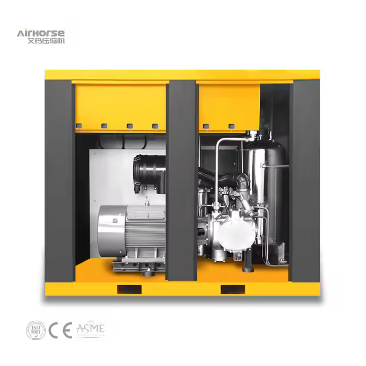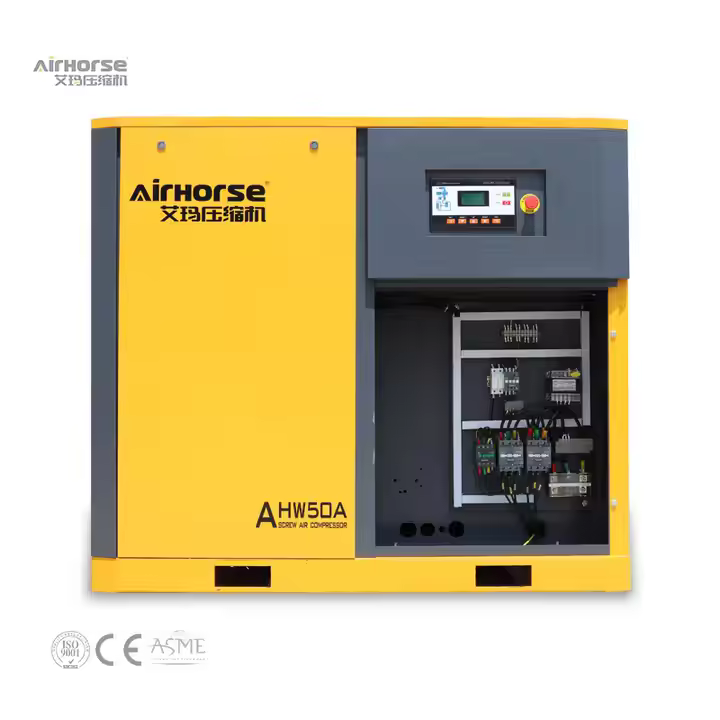 The Airhorse AHL50A Screw Air Compressor delivers reliable performance with a 50 HP motor and up to 200 CFM at 125 PSI. Ideal for industrial applications, it features a user-friendly digital control panel and energy-efficient design, certified to ISO 9001 standards.