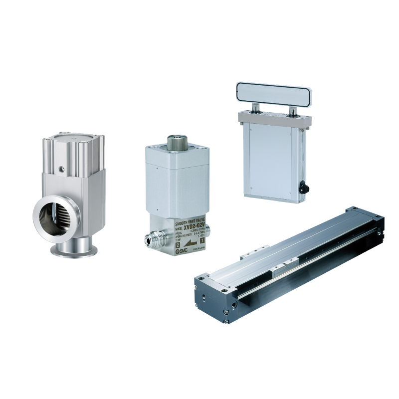 SMC High Vacuum Equipment (XL, XM, XGT, XVD, XSA Series) delivers precision for semiconductor and electronics industries with angle valves, slit valves, and smooth vent valves. Featuring minimal outgassing, replaceable bellows, and leak-tight performance down to 1×10⁻⁶ Pa, these lightweight units with two million cycle durability are ideal for high vacuum applications.